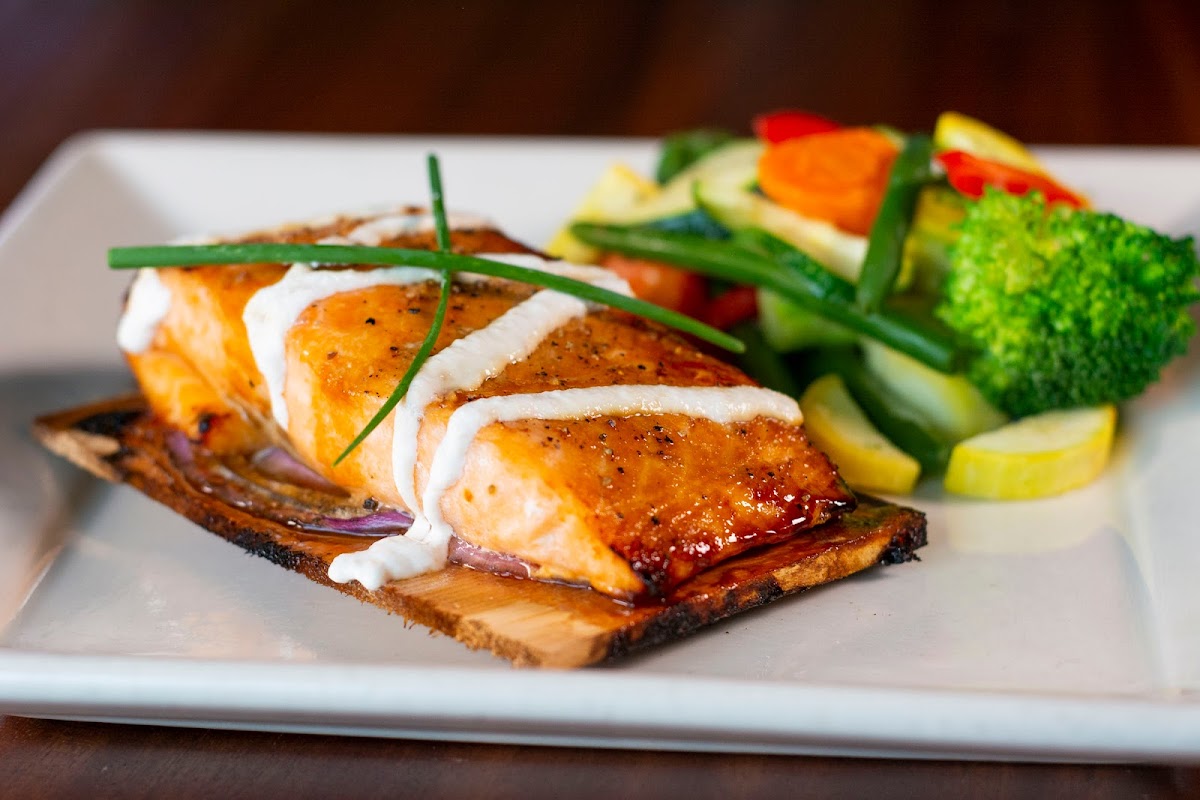 The atmosphere at Hefner Grill is equally impressive. Whether you’re sitting inside, where the ambiance is cozy with elegant touches, or on the patio, where you can enjoy views of the lake, the environment makes every meal feel a bit more special. The patio is especially ideal in warmer months, offering a laid-back yet sophisticated outdoor dining experience. You can enjoy the gentle breeze as you sip on a refreshing cocktail, making it the perfect spot for a relaxed evening with friends or family.
